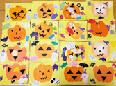 同じ色や形のパーツでも貼り付ける人によっていろいろな顔のおばけカボチャになりました。