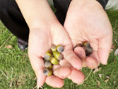 葉っぱやドングリを集めて、大きさや色を比べました。