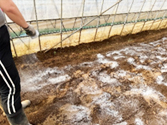 菜園の土壌を良くするために、石灰を撒く作業を行いました。